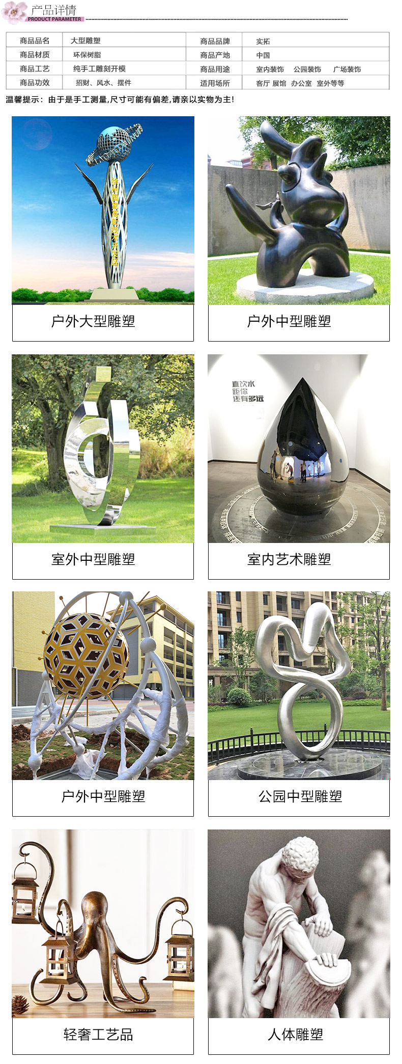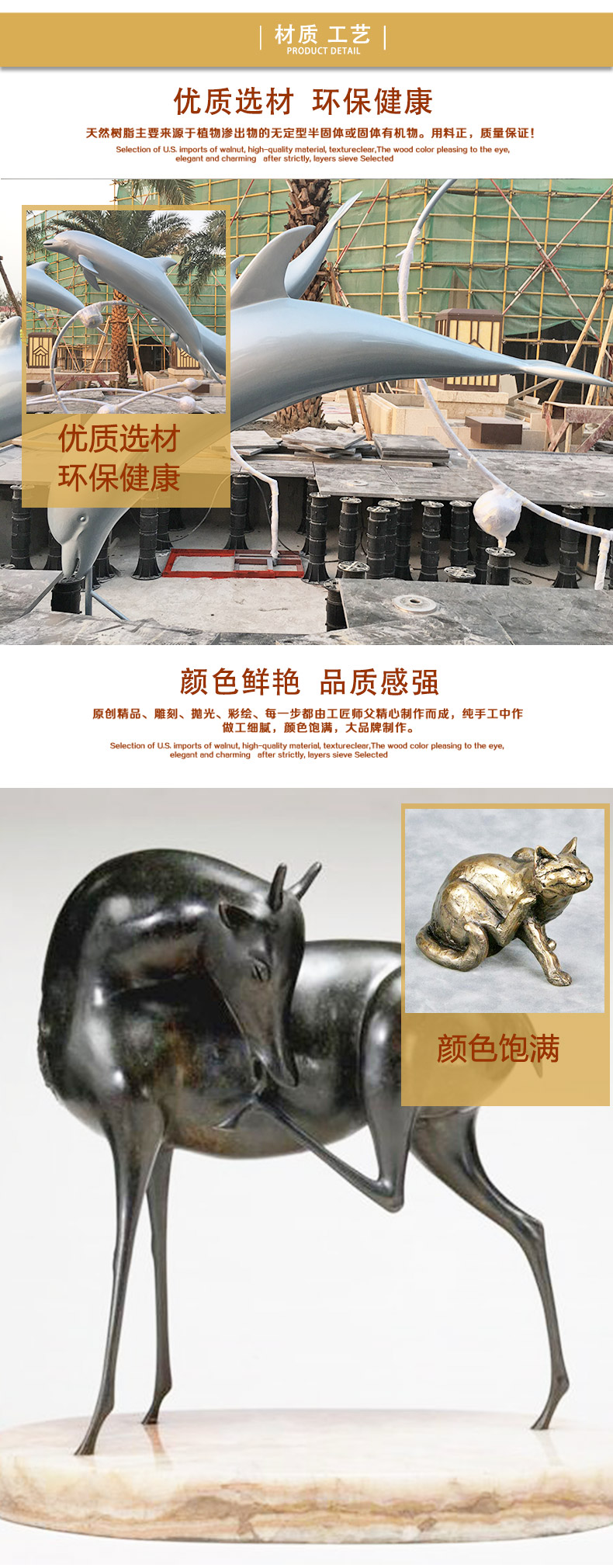 精選不銹鋼、青銅、石雕、砂巖、玻璃鋼等優(yōu)質材料,精雕細琢,嚴抓每一細節(jié)