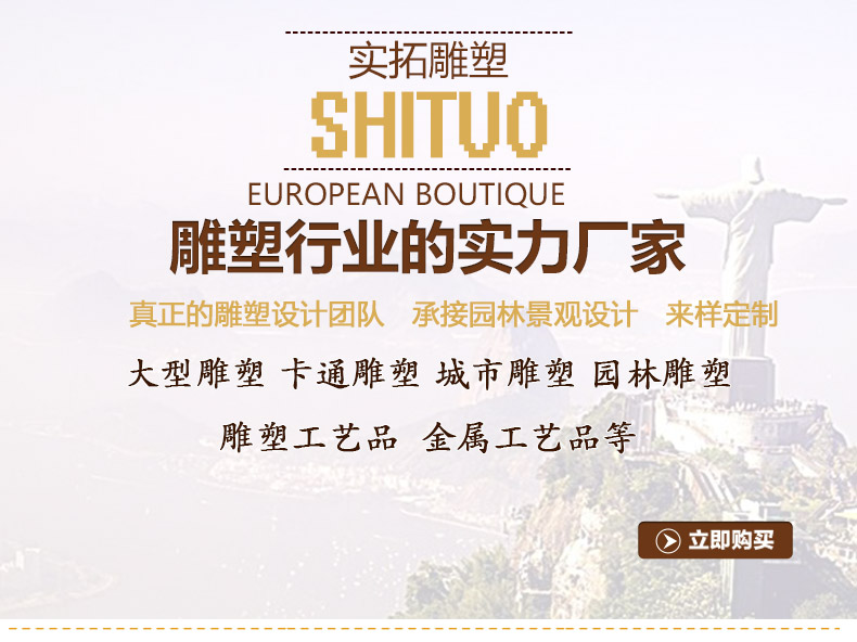 歡迎來到廣州市實拓雕塑工藝品有限公司網(wǎng)站,我們竭誠為您提供一站式景觀雕塑定制服務!